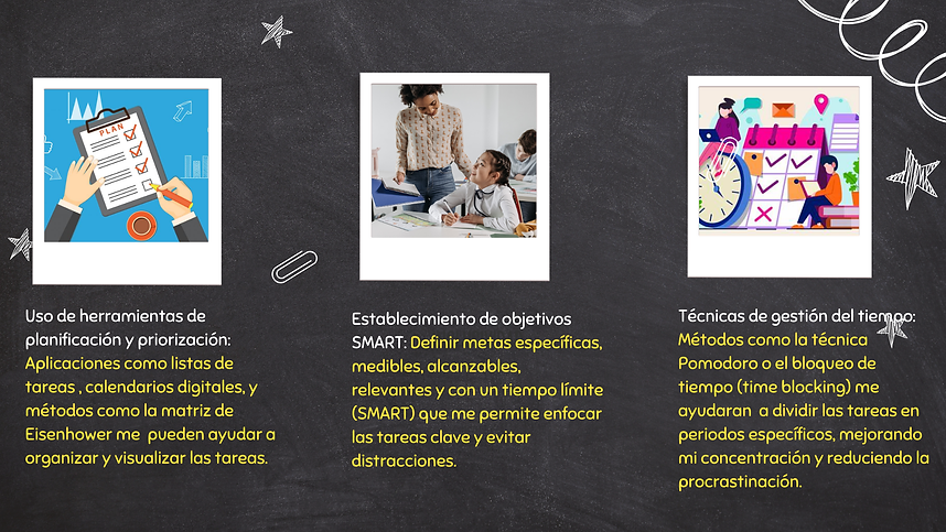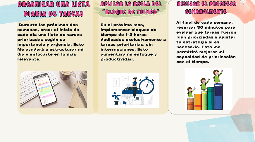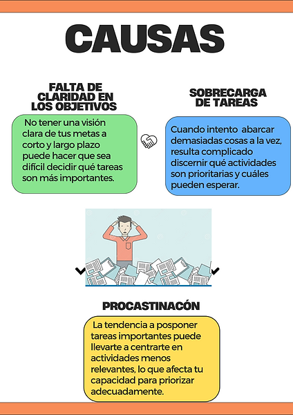 Manejo del tiempo: Dificultad para priorizar tareas, lo que puede afectar la productividad.